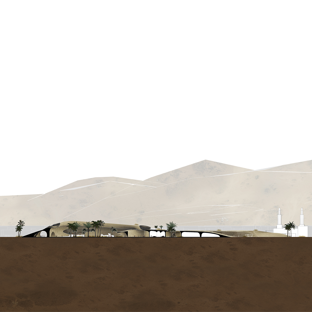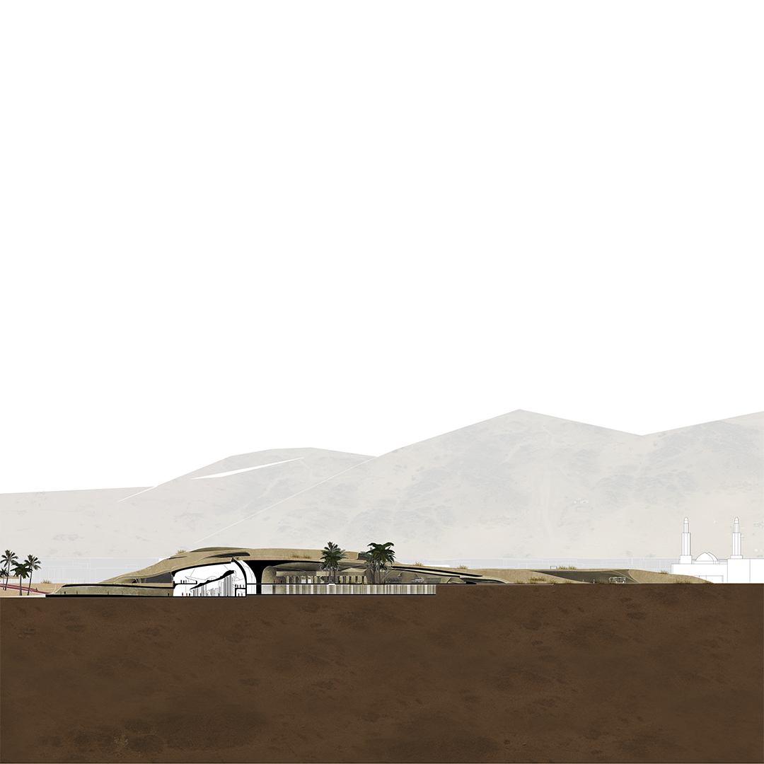 The project draws inspiration from the landscape, where the form of such dunes and mountains influences the design of the site. The intervention does not impose a traditional building but rather seeks to create a space that reflects the natural terrain, allowing the landscape to flow through the site, evoking the ever-changing movement of sand.