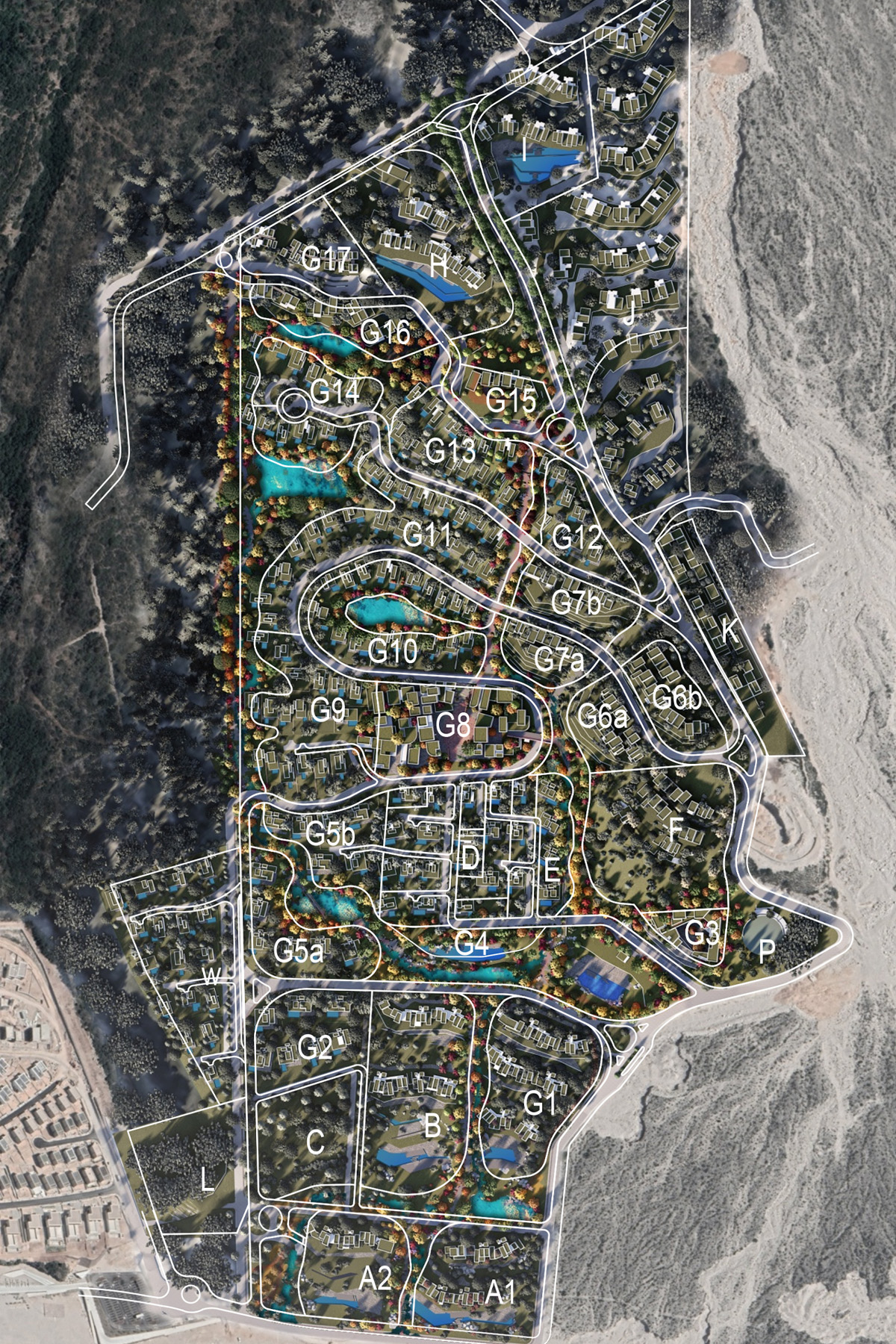 Compared to its neighboring countries, Albania boasts a much more unspoiled coastline. In recent years, it has emerged as one of the fastest-growing countries in Europe, both economically and socially. Parallel to this development, the number of tourism investments in the region, which has coastlines on the Adriatic Sea in the north and the Ionian Sea in the south, is increasing day by day. Located in the Palase region, approximately 25 miles north of Corfu, Greece’s closest island to the Albanian coast, Green Coast Village is being built as a new settlement with various service and commercial venues, hotels, resorts, residences, social and cultural areas, sports facilities, and extensive communal green spaces. The masterplan for this project was created by EAA. The conceptual framework of this plan is based on reflecting the unique features and specific charm of being “Mediterranean” both in the structural and social fabric of the settlement, which will be built as a kind of coastal village. Settlement strategies such as blending into the topography, the use of simple and local materials, a kind of fragmented approach shaped by the human scale, and sophisticated mass compositions formed the physical backbone of the design.