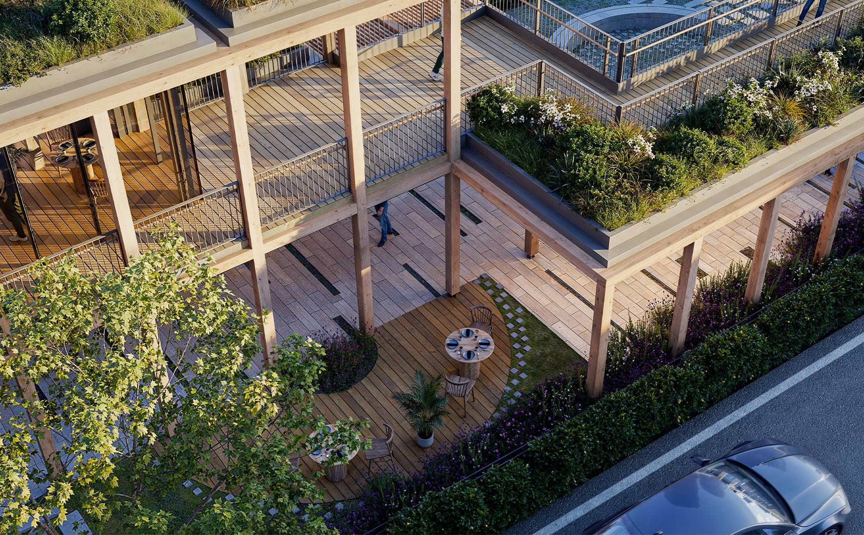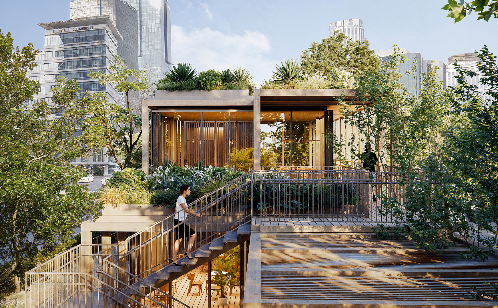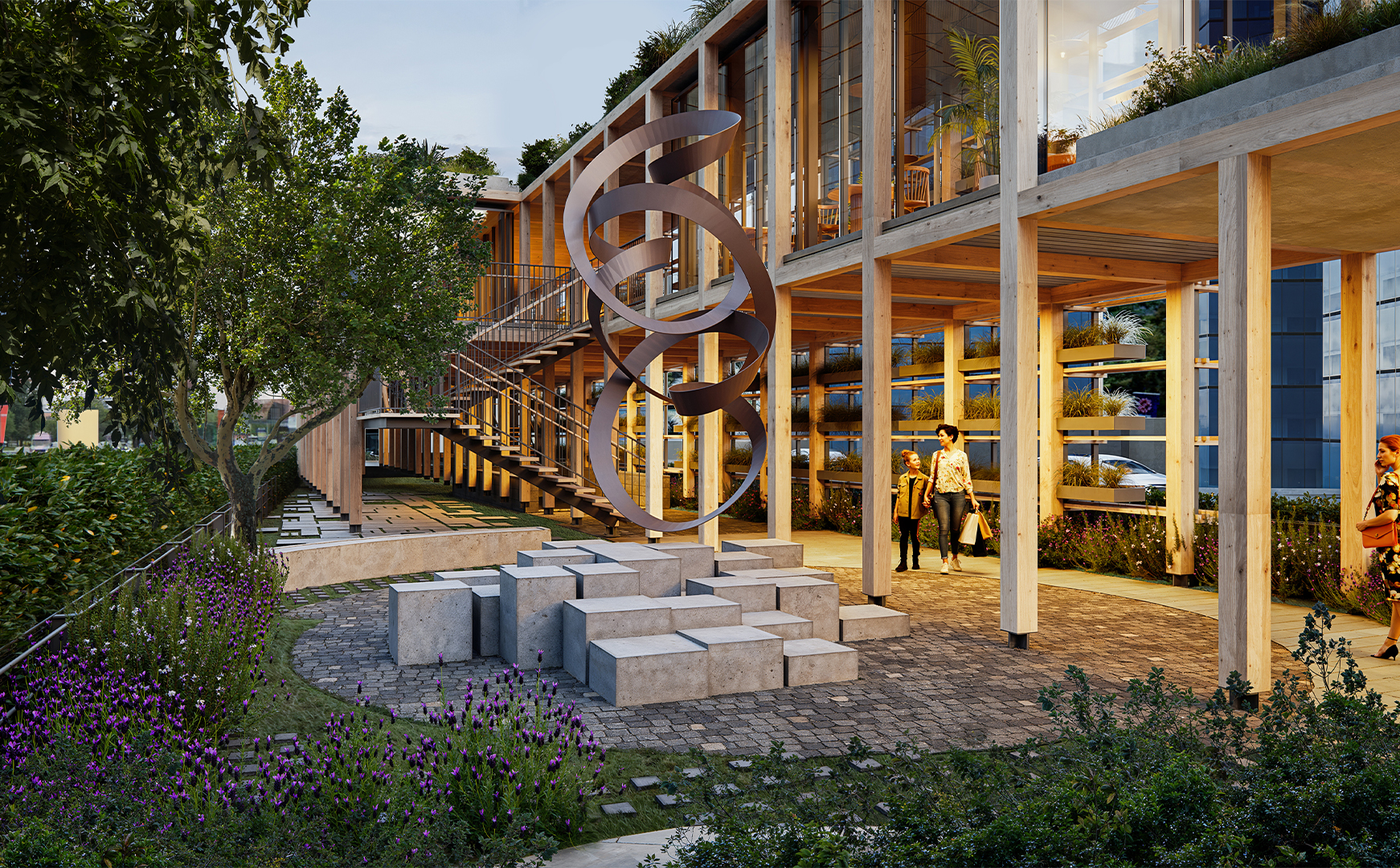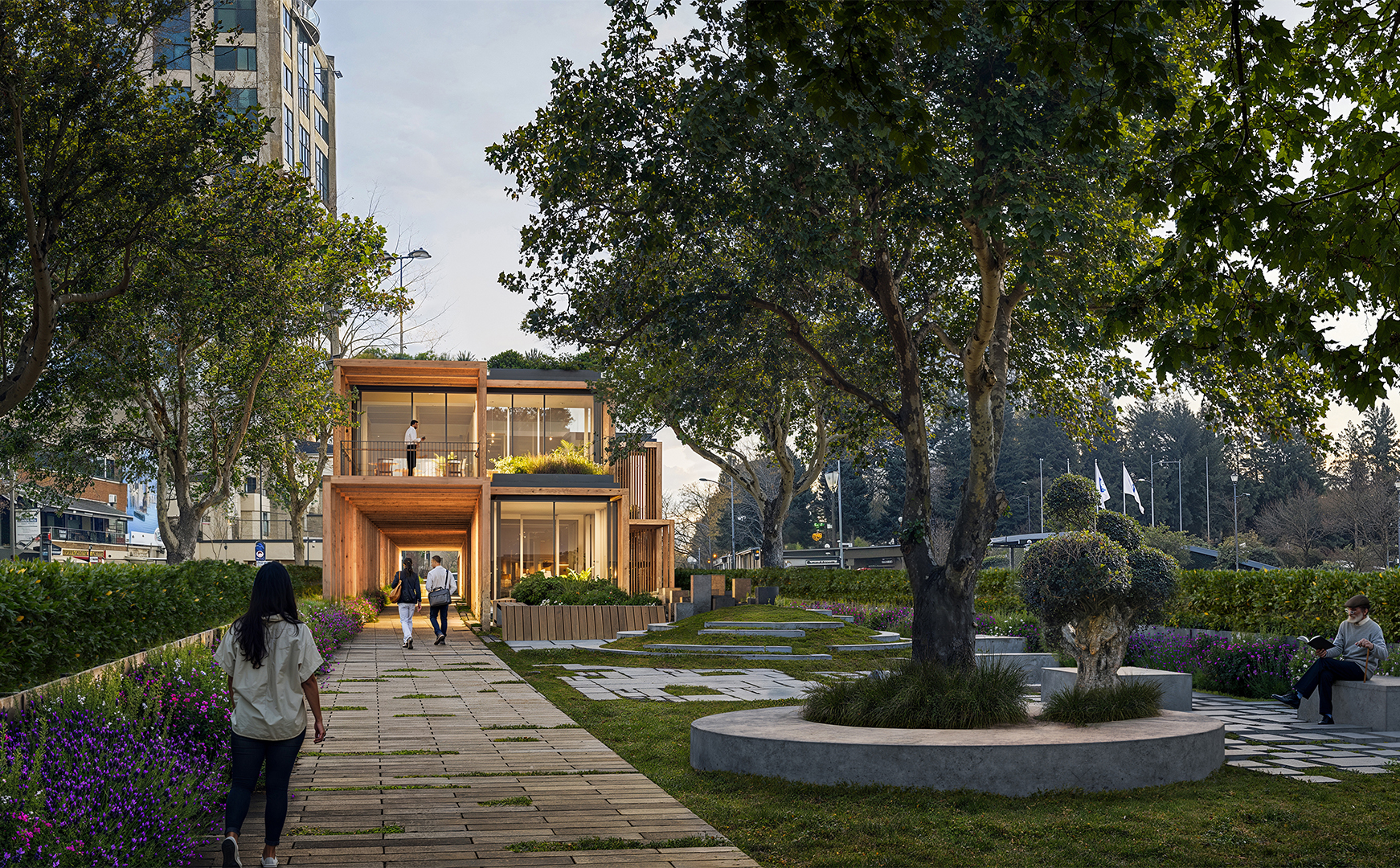 In this context, initially, the idea was to utilize the areas extending parallel to the street on both sides, which, despite being municipal property, are quite inefficient and unusable. The existing road routes were shifted towards these areas. Thus, a new, linear, and uninterrupted pedestrian path with an average width of about fifteen meters was produced between the separated roads. In this area, equipped with various services and cultural functions, a modular structural wooden framework was constructed. Enclosed, semi-enclosed, and open spaces, where the basic needs of users can be met, were integrated with a rich landscape texture. The approximately one-kilometer-long space was connected with pedestrian areas on the east and west sides of the road. In this context, both overpasses and underground connection points, incorporating the surrounding metro lines, were designed.