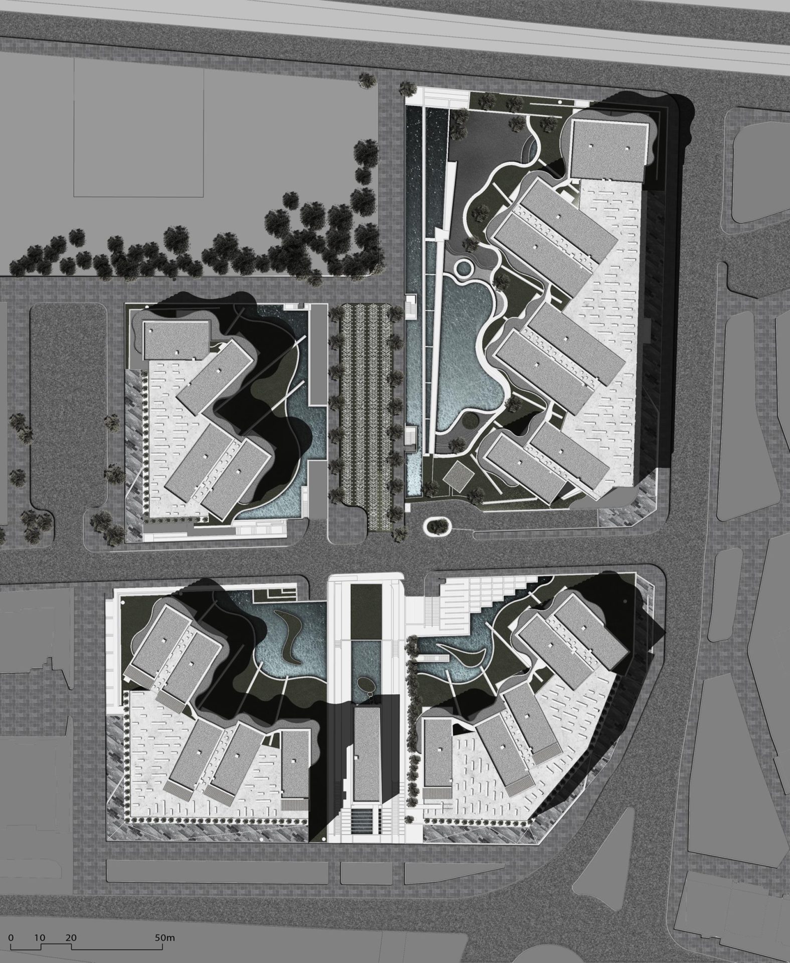 Built between 2006 and 2008, the 70.000-square-meter (753,474 square foot) housing project involved careful study of the topography of the site, the existing structural pattern of the area, transportation, construction density, and the sociological balances of the region.