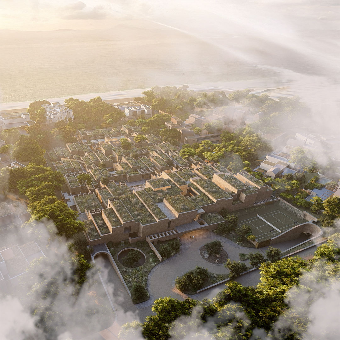 Compared to its neighboring countries, Albania boasts a much more unspoiled coastline. In recent years, it has emerged as one of the fastest-growing countries in Europe, both economically and socially. Parallel to this development, the number of tourism investments in the region, which has coastlines on the Adriatic Sea in the north and the Ionian Sea in the south, is increasing day by day. Located in the Palase region, approximately 25 miles north of Corfu, Greece’s closest island to the Albanian coast, Green Coast Village is being built as a new settlement with various service and commercial venues, hotels, resorts, residences, social and cultural areas, sports facilities, and extensive communal green spaces. The masterplan for this project was created by EAA. The conceptual framework of this plan is based on reflecting the unique features and specific charm of being “Mediterranean” both in the structural and social fabric of the settlement, which will be built as a kind of coastal village. Settlement strategies such as blending into the topography, the use of simple and local materials, a kind of fragmented approach shaped by the human scale, and sophisticated mass compositions formed the physical backbone of the design.