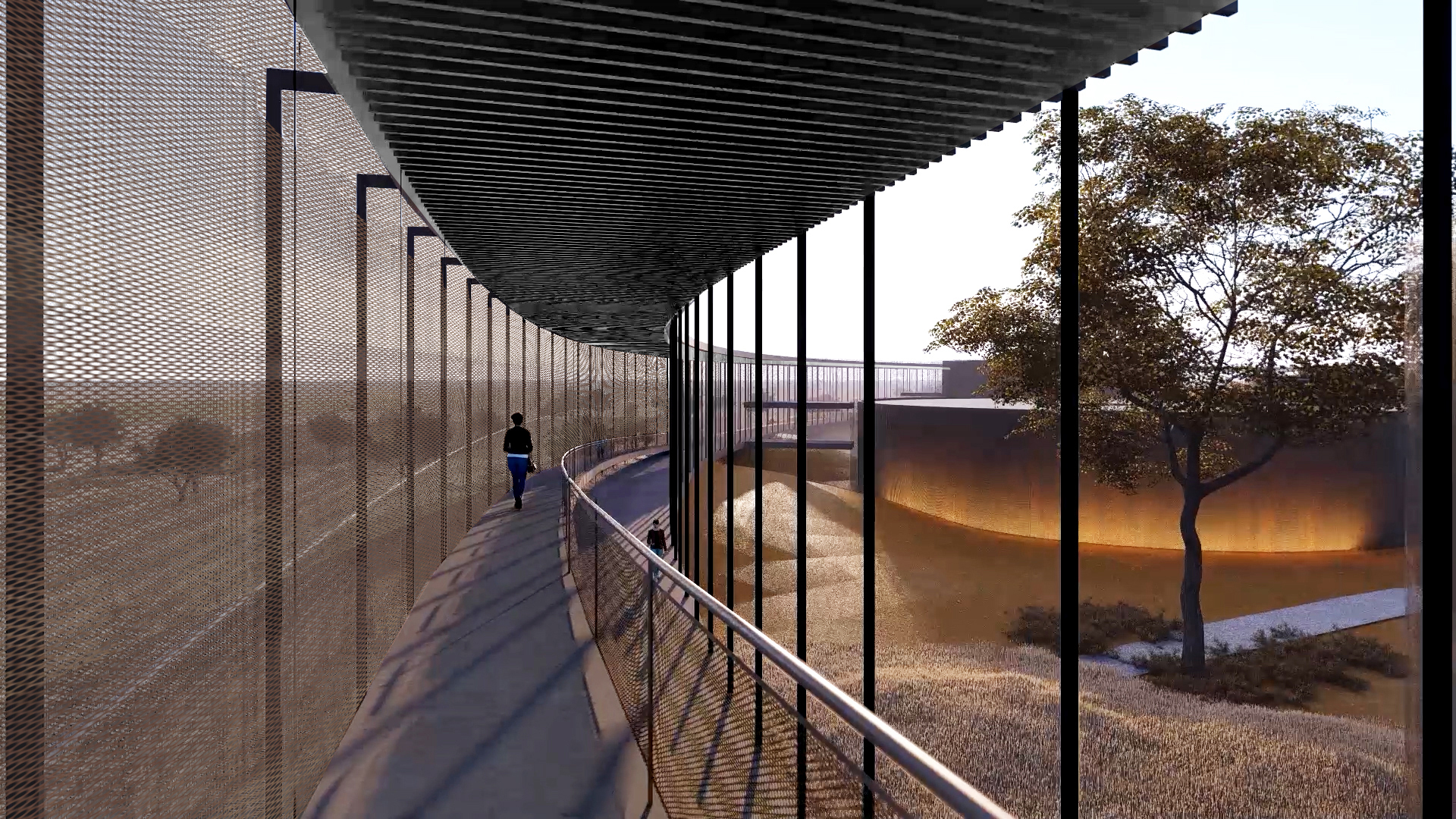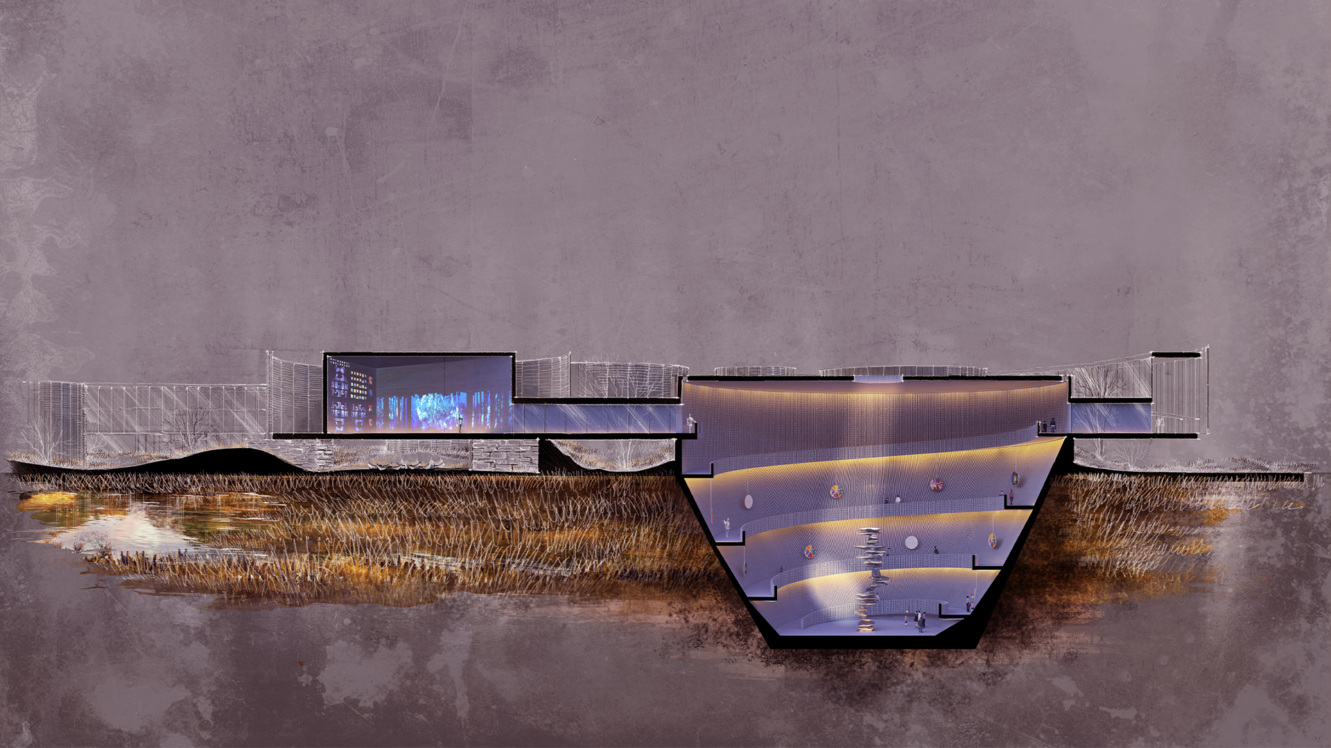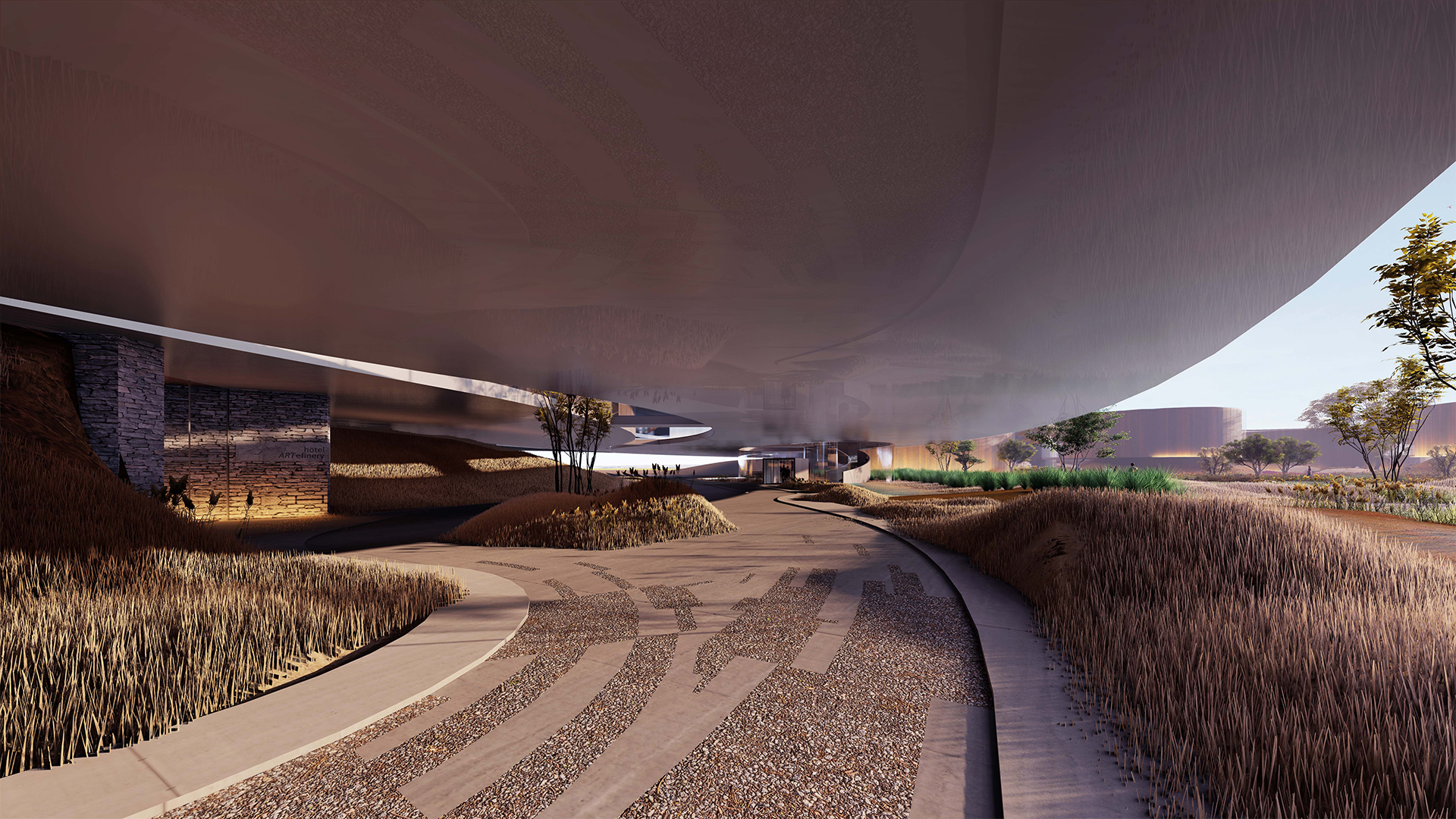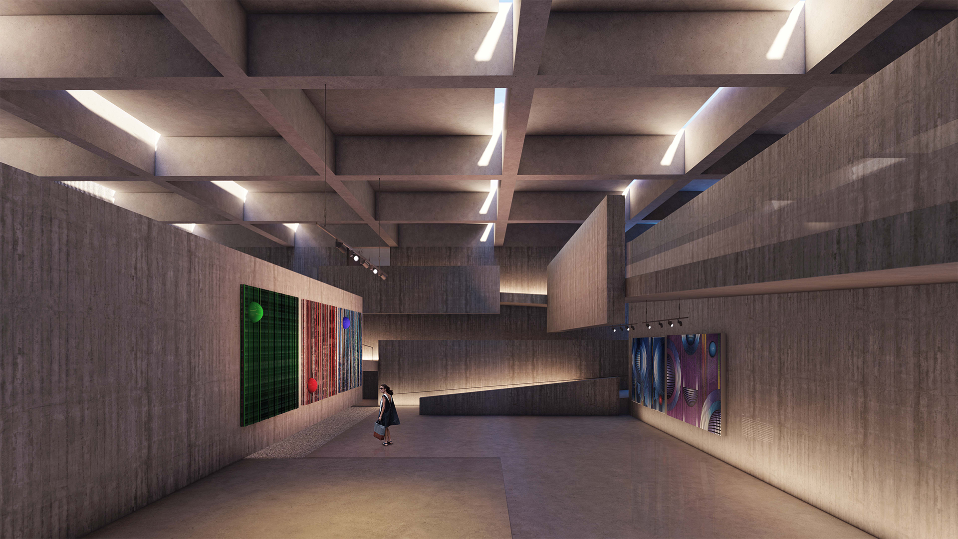 In this context, the new museum appears as a kind of land art intervention rather than a conventional building. The fragmented interior design offers a series of unexpected spaces. The complex is composed of exhibition galleries, a library, an auditorium, a restaurant and café along with a museum shop and additional retail units. The exterior circulation ring allows visitors to take in the almost rural feeling of the site while going in and out of the different spaces. The ground floor is completely porous and open to the public with the restaurant, café and retail units aiming to become a point of attraction for users.