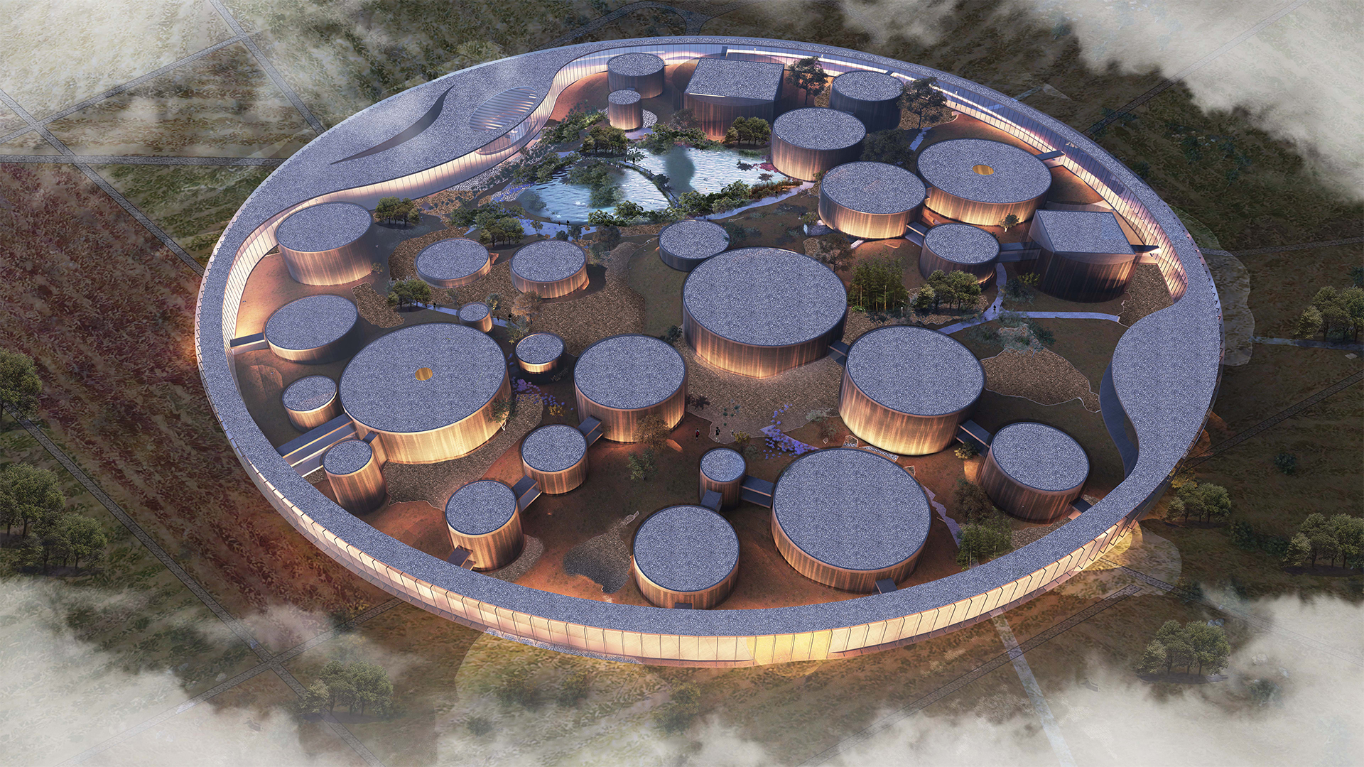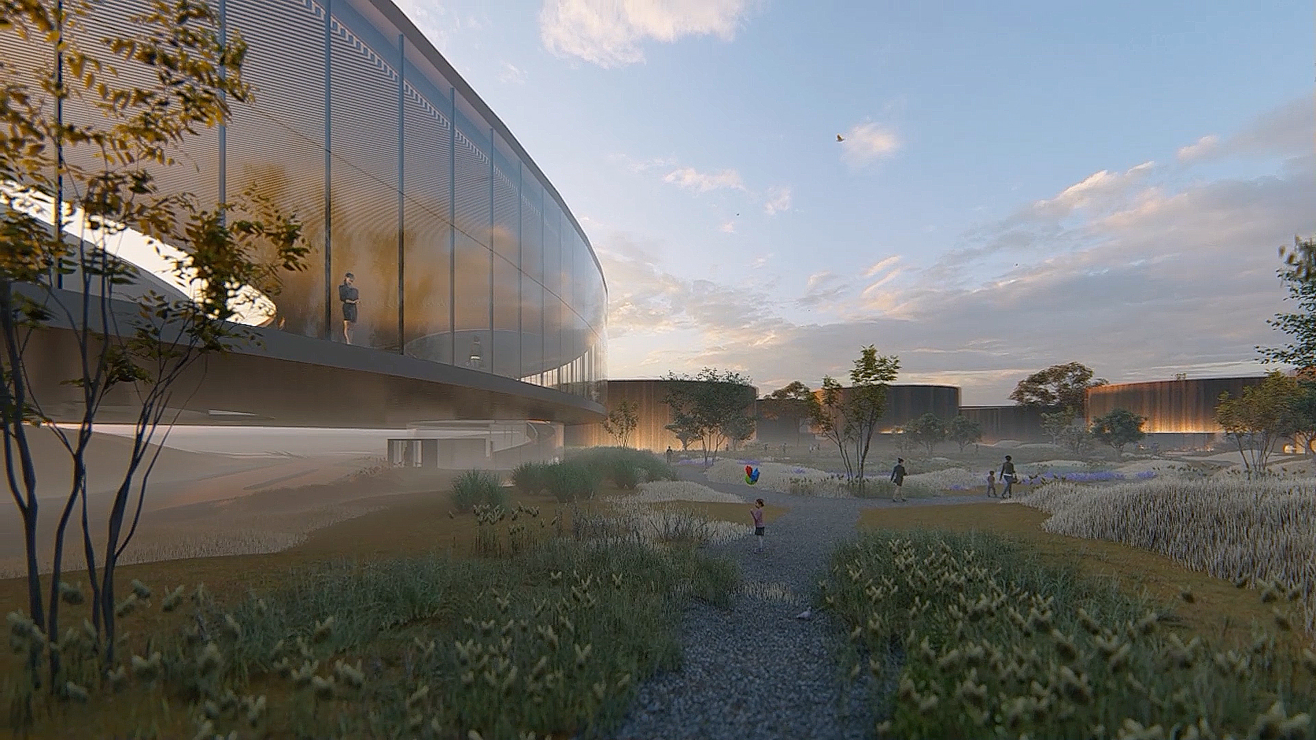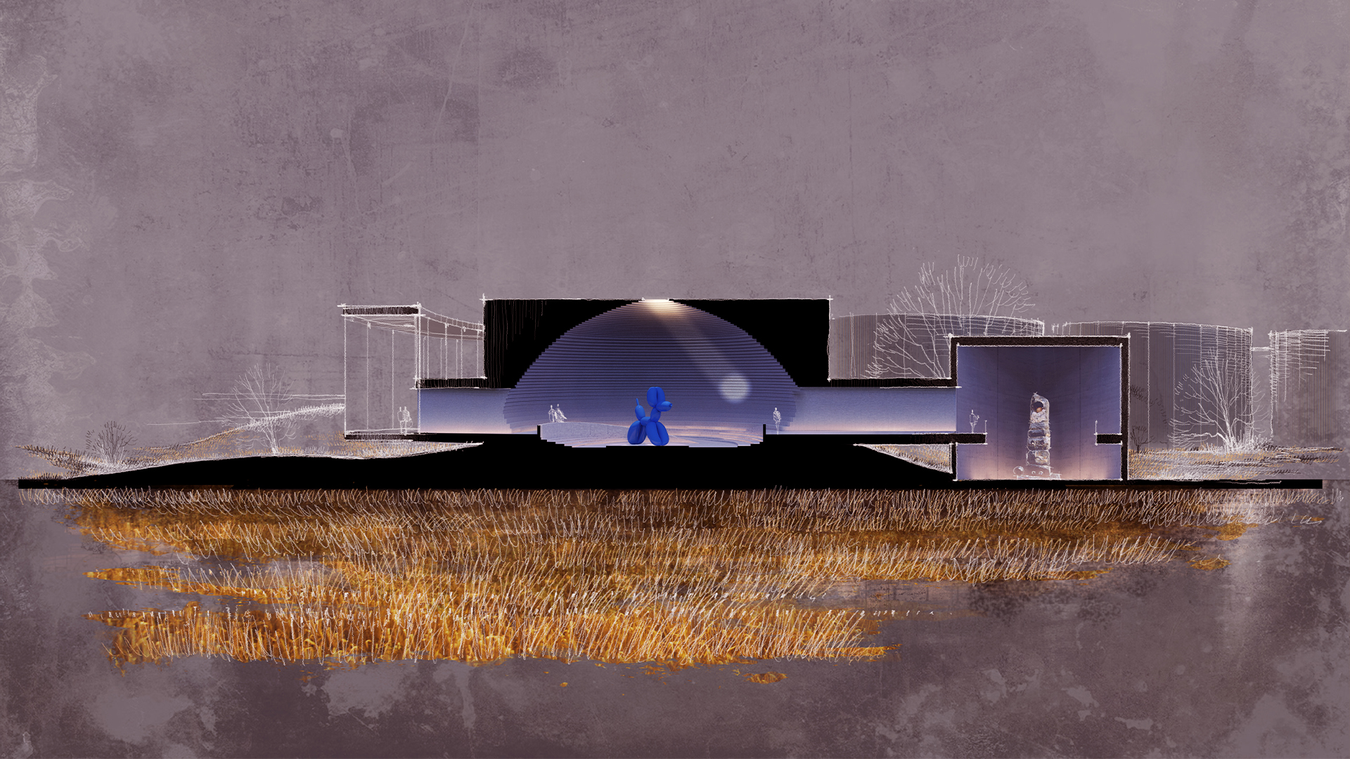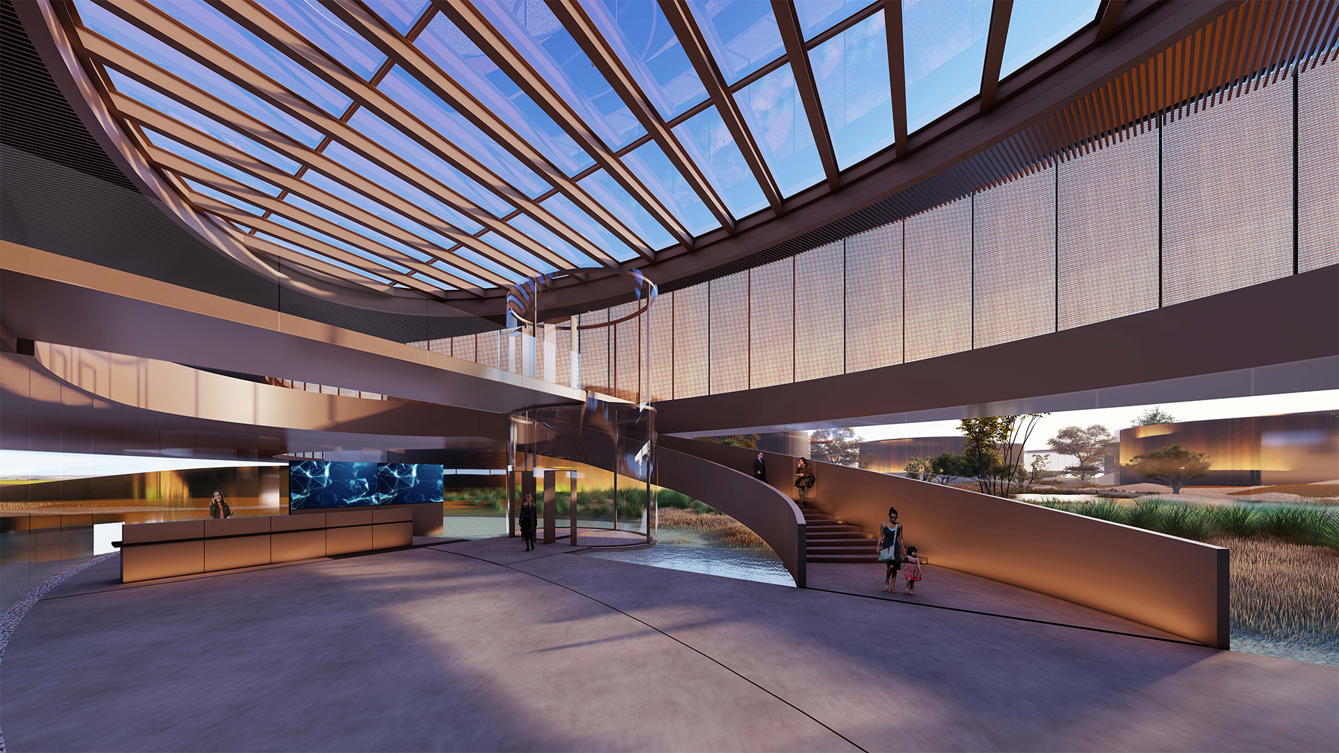 In this context, the new museum appears as a kind of land art intervention rather than a conventional building. The fragmented interior design offers a series of unexpected spaces. The complex is composed of exhibition galleries, a library, an auditorium, a restaurant and café along with a museum shop and additional retail units. The exterior circulation ring allows visitors to take in the almost rural feeling of the site while going in and out of the different spaces. The ground floor is completely porous and open to the public with the restaurant, café and retail units aiming to become a point of attraction for users.
