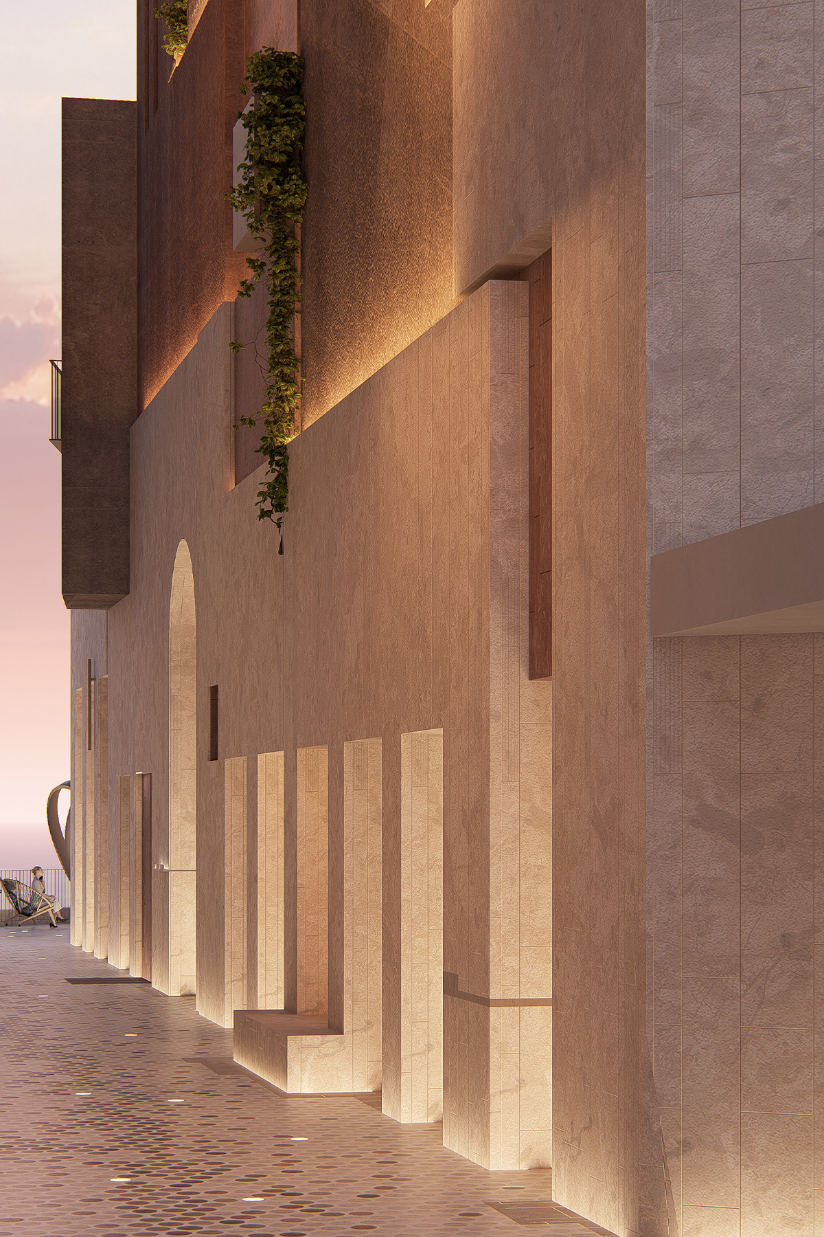 This approach, much like in Mediterranean villages, with its narrow and shaded streets opening towards the sea, enriches the guest’s experience by offering unexpected perspectives and vistas.