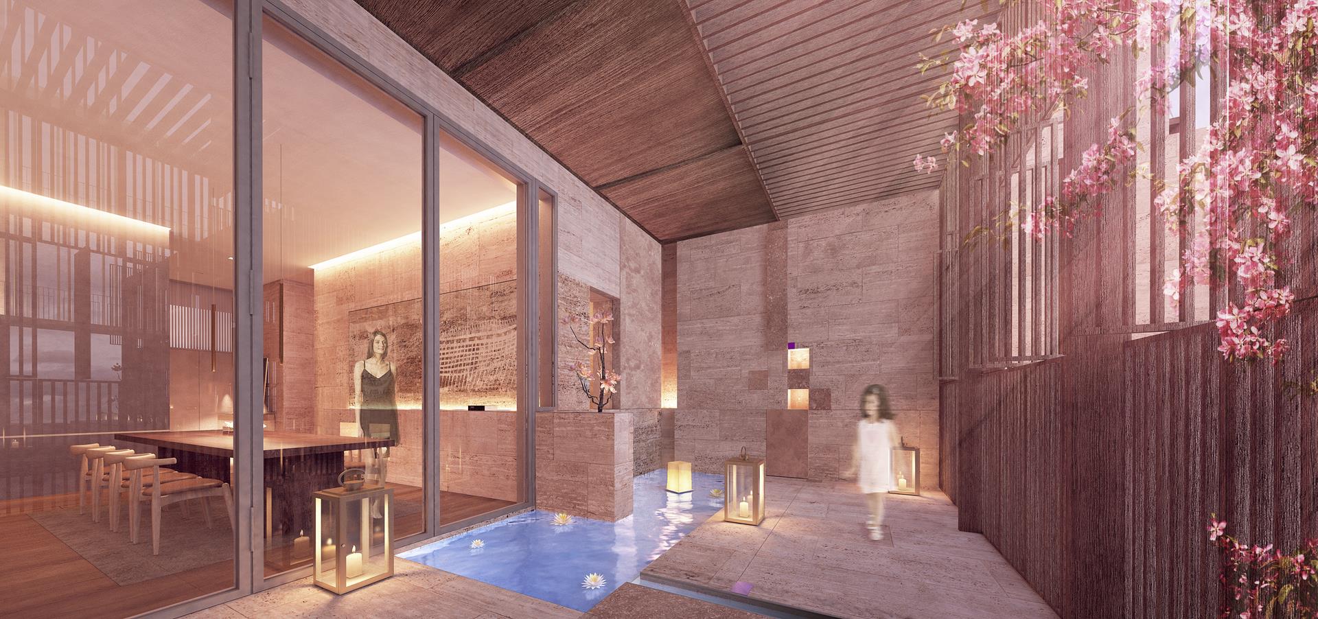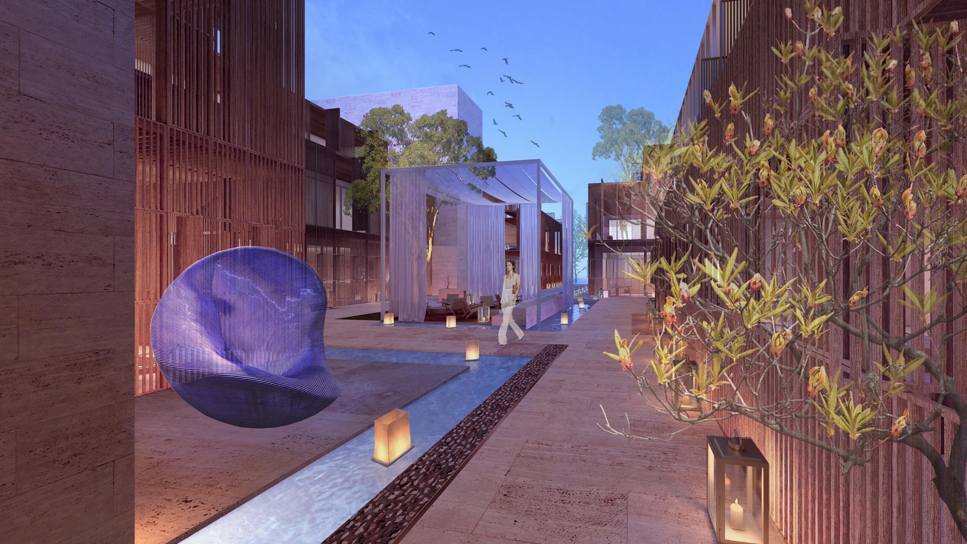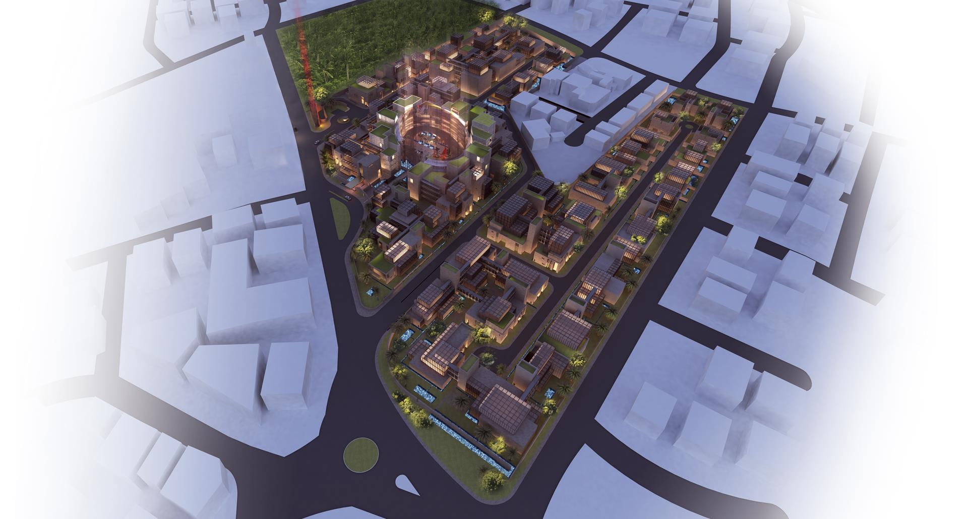 Initially, the nature and building techniques of the Omani house and conventions of creating an urban texture was studied and translated into a modern day urban experience. The traditional courtyard housing is interpreted in the expression of clusters where the systematic arrangement on a regular grid resulted in private gardens or terraces for each unit that through carful orientation provided a balance between privacy integration with the natural surroundings.