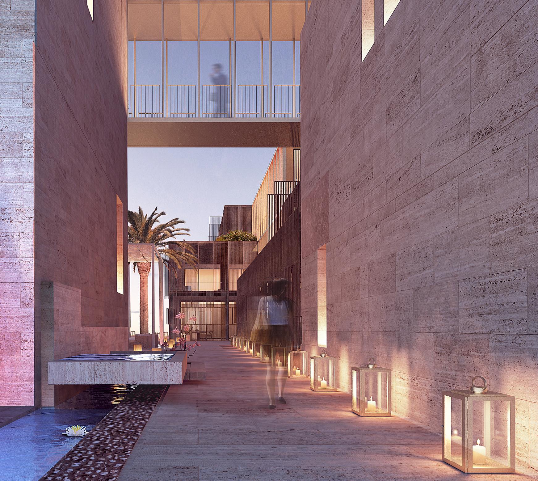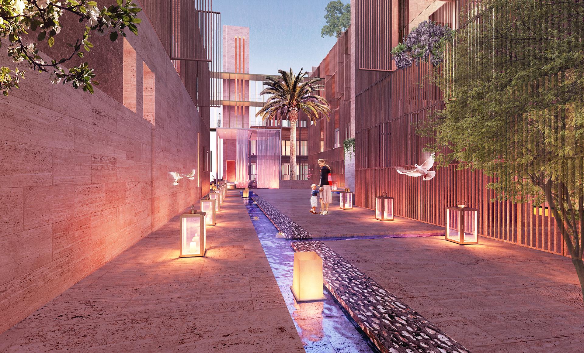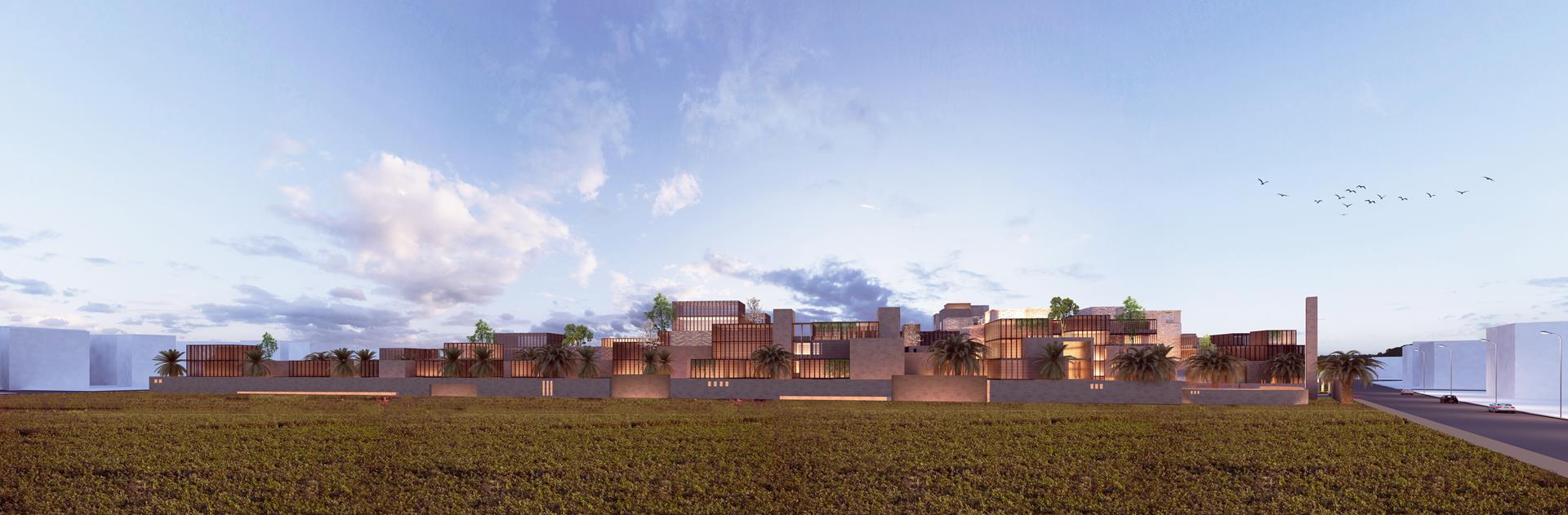 The proposal aims to be a contemporary complement to the historical building culture and a multicultural response to newly adapted ways of living in Muscat.