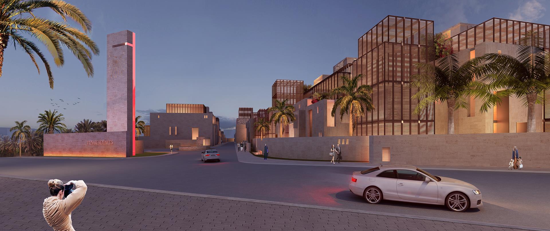 The project sits on the site of a former equestrian center, surrounded by villas and small apartments in Al-Hail, Muscat. Intending to underline the texture of the surroundings and maintain the harmony with its context, the low-rise houses together with the lateral passages were distributed around the elliptical piazza and towards the periphery.
