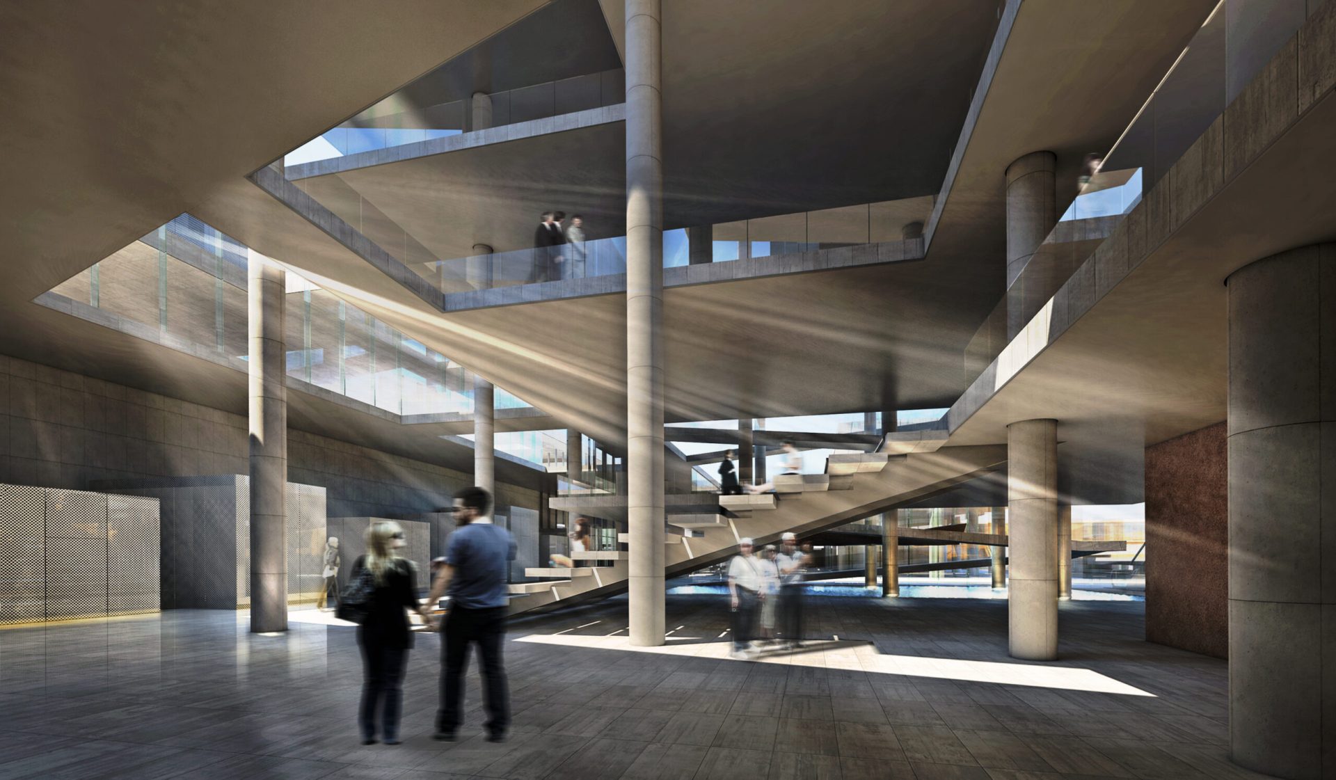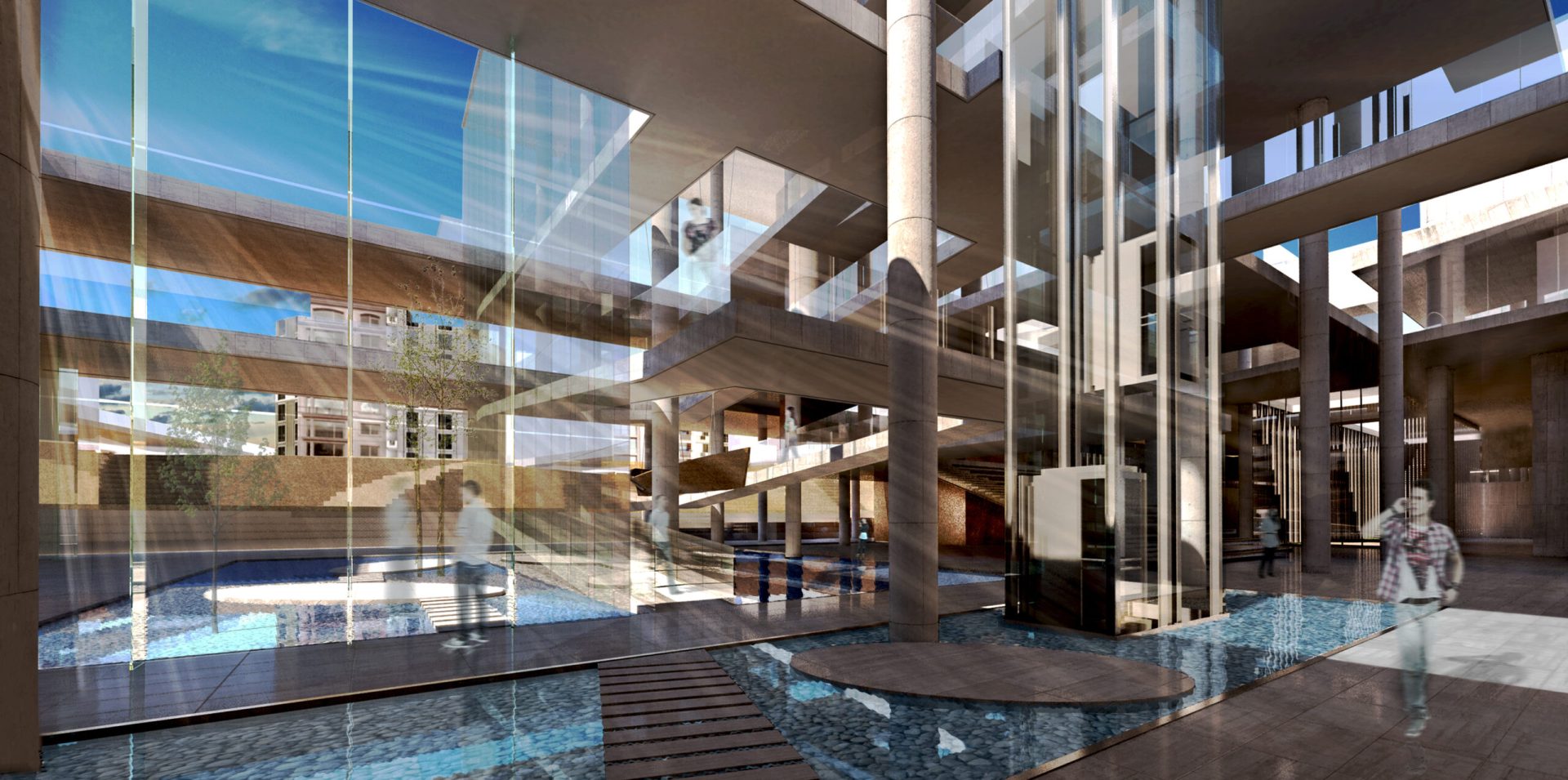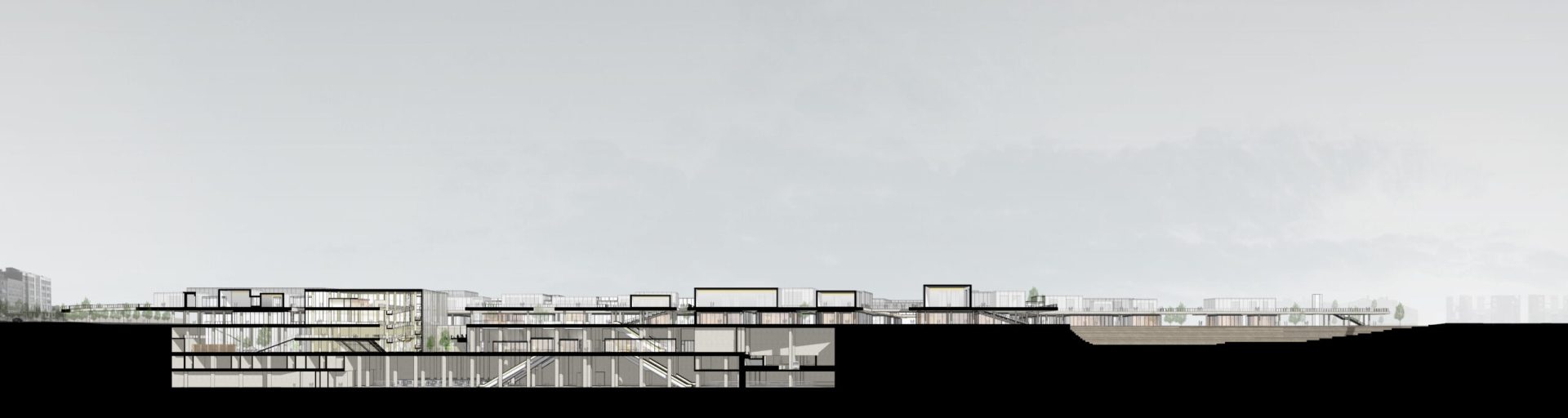 Unlike conventional museums, exhibition spaces of city archives are designed in fragments and spread over the canopy which is serving as a clear separator between the commercial activity on the ground level and the public space on archives level. In the Transfer Center while one transfers between stations; to meet the empty space where the port remains are, to see the entrance gallery of the city museum and the commercial buildings, to have a visual relation with the above-ground enables a perception of being in a “place”.
