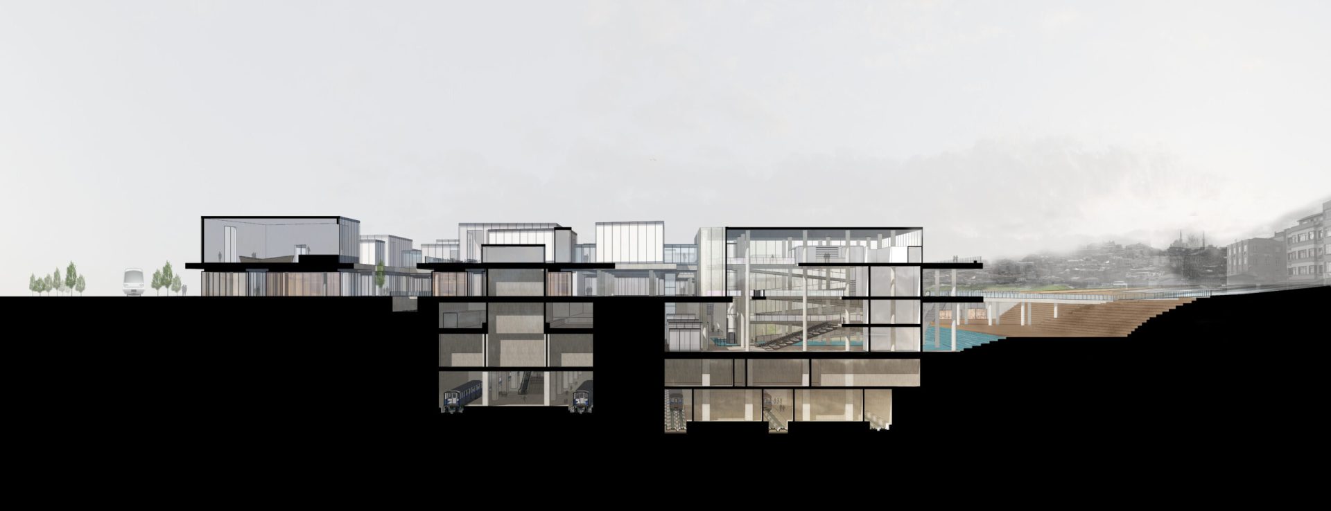 The remains of the ancient Theodosius port unveiled during the excavations undertaken in Yenikapı (the future transfer point in Istanbul inside Historical Peninsula) led the way to the international competition for Yenikapı Transfer Point, Archeopark and City Archives. Taking the matter in wider sense, one main driver of design was to overcome the urban fragmentation in the Historical Peninsula (rooted in former urban interventions that demolished historical building texture to open fast vehicle roads) by rearranging the vehichle roads in order to revitalize the street life. Extending the urban pattern of Yalı Neighborhood (an isolated region still sustaining its unique urban texture today) helped unite the other fragments. City archives, transfer station and commercial units are condensed in one point creating variety of urban spaces.